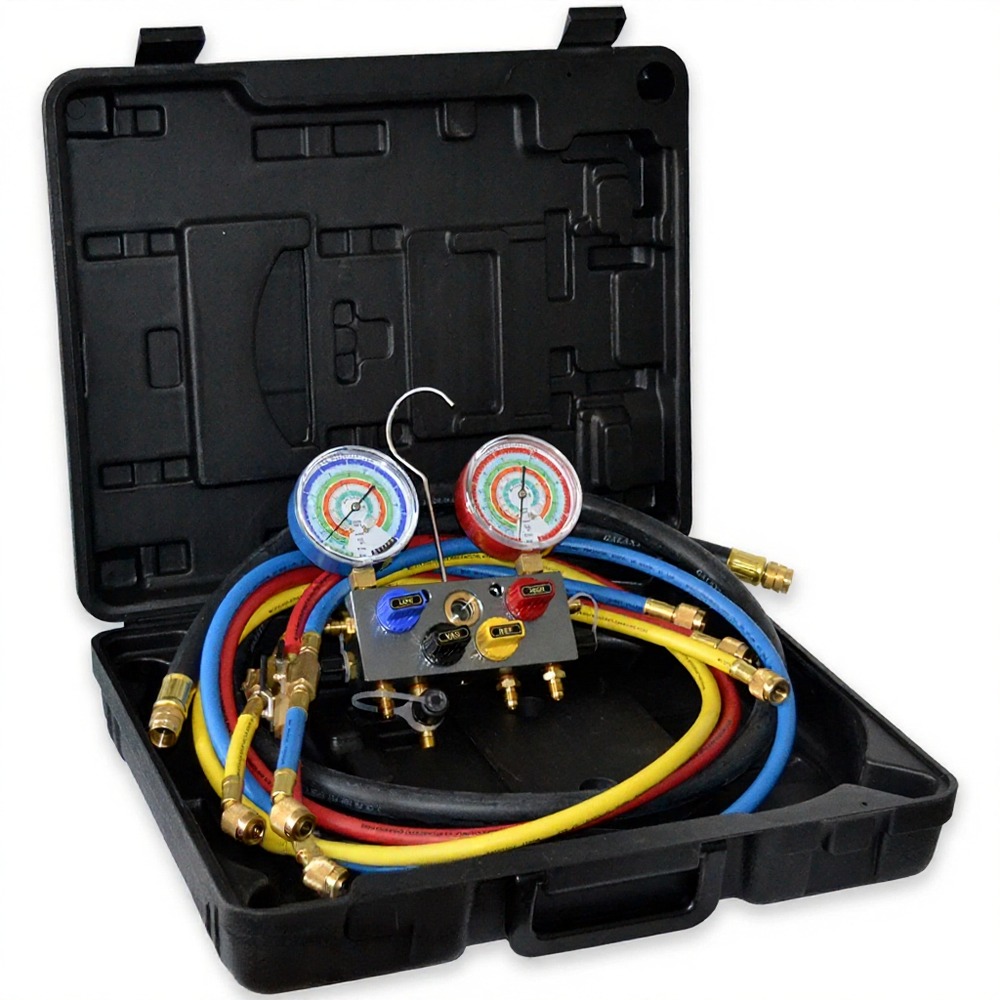 Надёжная конструкция корпуса и качественные шаровые/поршневые вентили обеспечивают точное управление потоками и быстрый доступ к четырём контурам. Комплект в кейсе упрощает транспортировку и хранение оборудования — всё под рукой для выезда на объект или работы в сервисной зоне.