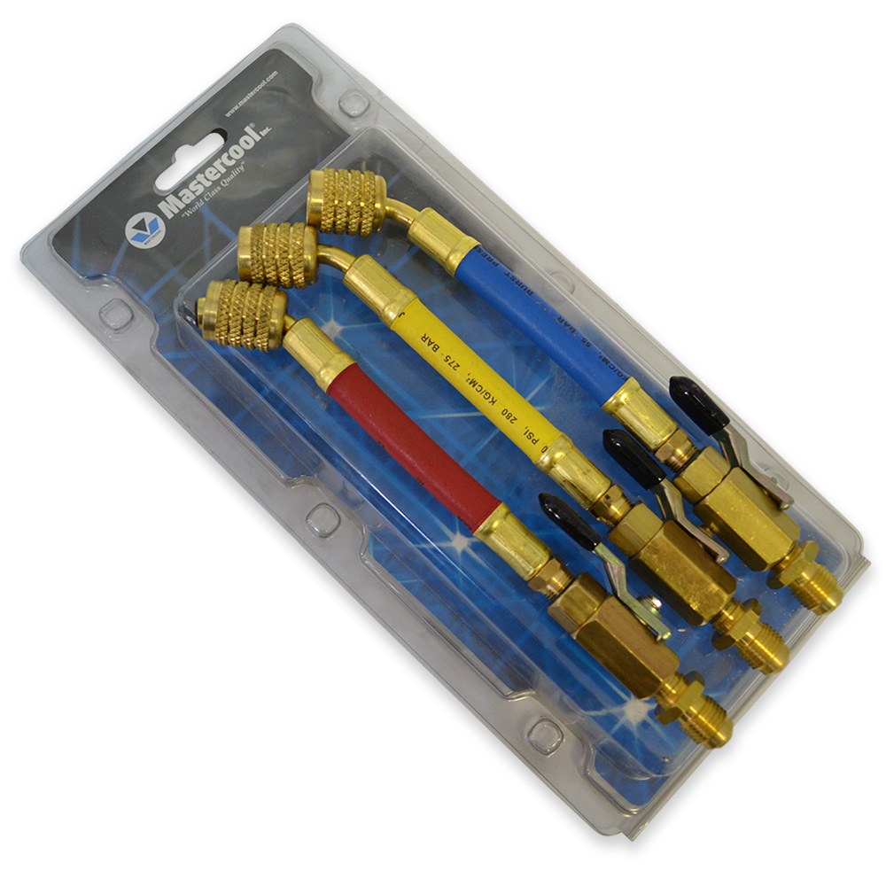 Mastercool 49262-J — профессиональный шаровый вентиль американского производства с резьбой 5/16" SAE, предназначенный для работы с фреоном R410A. Комплектуется удлинительным шлангом для удобного подключения к сервисным портам кондиционеров и холодильных систем.