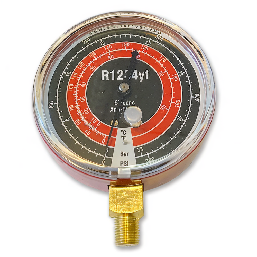- Единицы измерения: бар и PSI, с нанесением шкалы под R1234YF.