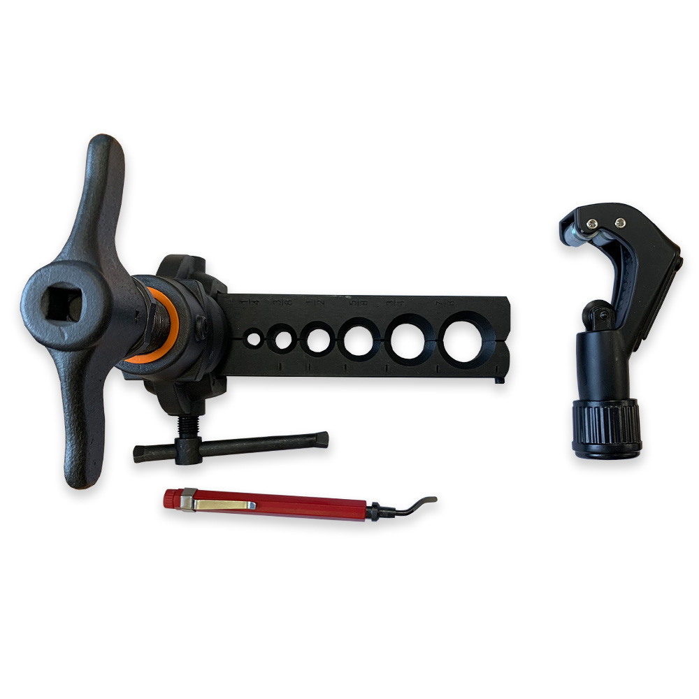 Комплект Mastercool 70060 объединяет в себе всё необходимое для точной подготовки медных труб при монтаже холодильного и климатического оборудования. Набор включает эксцентриковые вальцовки модели 70059, надежный труборез и риммер для чистовой обработки. Такой комплект подходит как для сервисных задач, так и для монтажных работ на объекте.