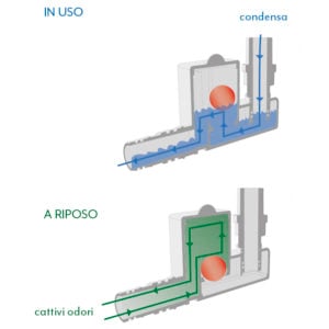 Сифон MICRO — компактное решение для отвода конденсата с удобной возможностью обслуживания и проверки. Конструкция рассчитана на работу в вертикальном положении с адаптером Ø18 мм, установленным сверху, что обеспечивает стабильный расход и надежное гидрозатворное отсечение запахов.