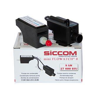 Mini Flowatch® 0 (DE05LCB980) — компактный и экономичный поршневой насос для отвода конденсата от настенных кондиционеров мощностью до 8 кВт. Это самая простая и доступная модель в линейке проточных помп Siccom, разработанная специально для помещений, где важны минимальные габариты и практически бесшумная работа.
