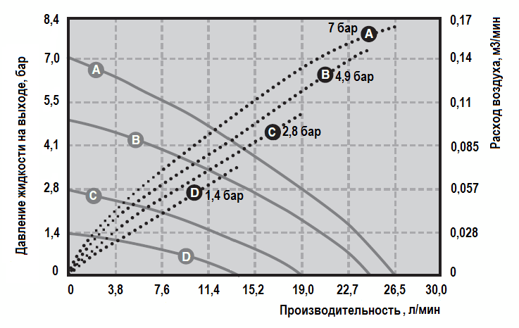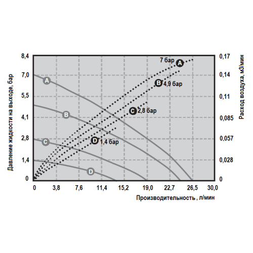 Рабочие характеристики насоса Graco HUSKY 307-PP-PP-SP-SP