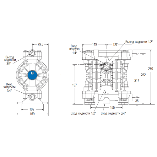 Габаритный чертеж насоса Graco HUSKY 515-PP-PP-SP-SP
