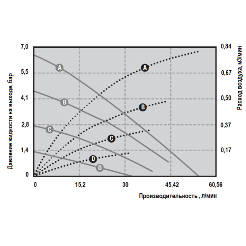 Рабочие характеристики насоса Graco HUSKY 515-KY-KY-PTFE-PTFE