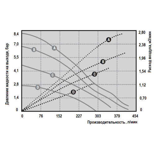 - Производительность: 1–22,7 м³/час (16–378,5 л/мин)