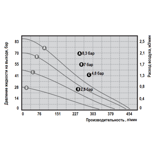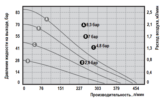 - Производительность: 1–27,2 м³/ч (16–454 л/мин)