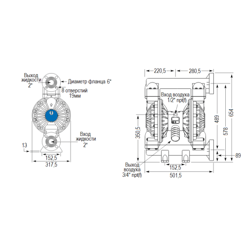 | Диаметр подключения | 2" (50 мм), фланцы ANSI/DIN |