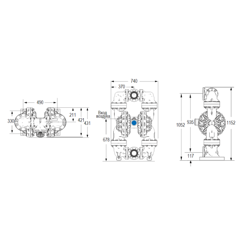 Габаритный чертеж насоса Graco HUSKY 3300P-P01-A-P1-PP-PT-PT-PT