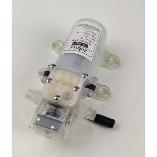 Производительность насоса достигает 4 л/мин, а максимальное давление — 5.5 бар, что делает его отличным решением для дозирования и стабильной подачи жидкости в кафе, лабораториях, на производстве и в мобильных системах.