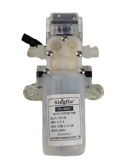 Насос Singflo FL-4451 — это самовсасывающая мембранная помпа, предназначенная для перекачки жидкостей без твёрдых включений. Модель отлично подходит как пищевой насос для воды, чая, кофе, вина, молока, масла и мёда, а также может использоваться для слабых кислот и щелочей.