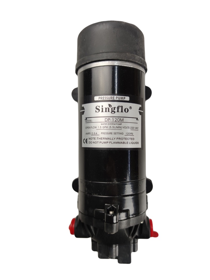 Насос Singflo DP-120M 220В — это мембранная самовсасывающая помпа высокого давления, предназначенная для перекачивания воды и технических жидкостей в стационарных и мобильных системах.