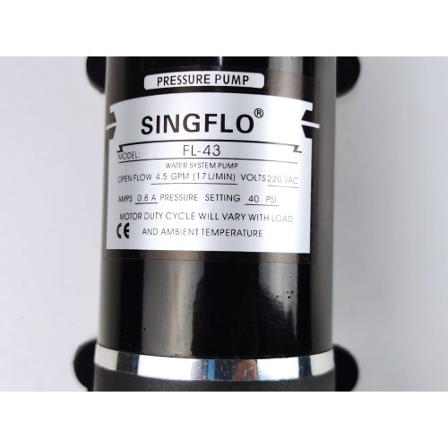 Насос Singflo FL-43 предназначен для подачи воды под давлением и подходит для широкого спектра задач: садовые опрыскиватели, автомойки, яхты, катера, лодки, дома на колёсах и системы обратного осмоса. Модель работает с пресной и солёной водой.