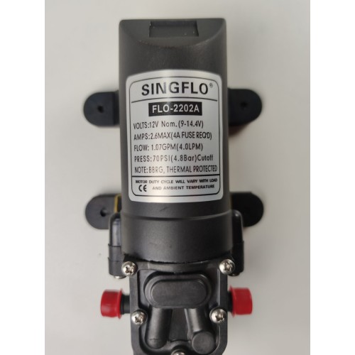Насос Singflo FLO-2202A предназначен для подачи воды под давлением и подходит для большинства применений. Модель устанавливается в помещениях, на яхтах, катерах и в домах на колёсах для душа и раковины. Также используется в сельском хозяйстве для полива, орошения и опрыскивания растений, а также в декоративных фонтанах.