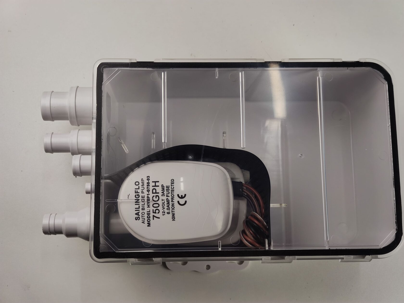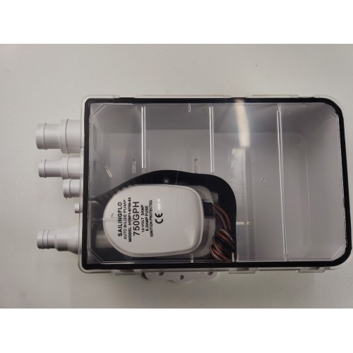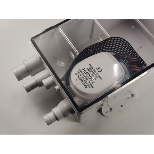 Singflo HYBP1-G750-03 — компактная система для перекачки сточных вод из раковины, камбузной мойки или душевого поддона на катере, яхте, кемпинге или автодоме. В комплекте осушительный насос с баком и датчиком включения/выключения, который автоматически отводит воду в резервуар или за борт.