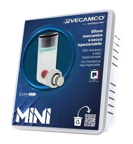 Сифон VECAMCO Mini — компактный элемент дренажной системы кондиционеров с гидромеханическим затвором, который препятствует проникновению запахов и обратной тяги из канализации. Модель разработана специально для бытовых и коммерческих сплит-систем.